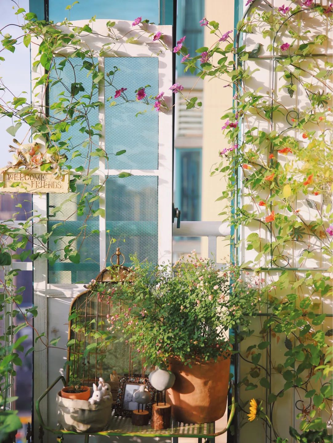 另外,也要考虑到家里是否有养宠物,宠物们可能会对花花草草很感兴趣,趁你不注意的时候“搞破坏”,这种情况下需要考虑尽量不要将植物直接放置在地面上。些确定好之后,应该对自己的阳台花园有一个大致的构想了吧?选好喜欢的风格后,接下来我们来看看怎样拾掇好这个小花园吧~