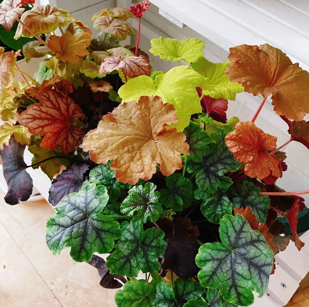 矾根——上帝打翻的调色盘,即使在最阴暗的地方也可以是五颜六色的。矾根的叶子在春、秋、冬三季的全日照环境下颜色更鲜艳,过度遮荫容易褪色。
